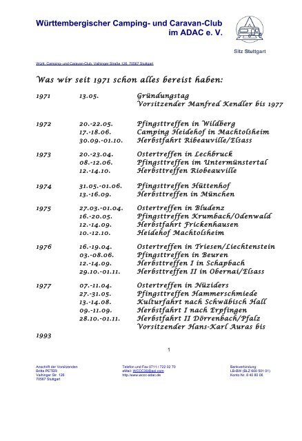 Citation needed Membership from a modern club. Der Württembergische Camping- und Caravanclub im ADAC ist einer von rund 50 Campingclubs in Deutschland die sich unter dem Dach des ADAC gegründet haben.